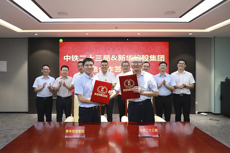 2020年7月23日,中鐵二十三局與新華控股集團(tuán)戰(zhàn)略合作簽訂儀式在合肥隆重舉行。中鐵二十三局集團(tuán)黨委常委、紀(jì)委書(shū)記、監(jiān)事會(huì)主席李強(qiáng),華中區(qū)域指揮部指揮長(zhǎng)袁勇,新華控股集團(tuán)董事長(zhǎng)吳成柱、副總裁莫曉東等雙方領(lǐng)導(dǎo)和代表出席了本次簽約儀式。雙方就地產(chǎn)、教育、基礎(chǔ)建設(shè)、生態(tài)環(huán)保、產(chǎn)業(yè)基金等領(lǐng)域的合作進(jìn)行了深入交流,達(dá)成了一系列合作。