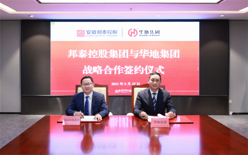 2021年5月27日,華地集團與安徽邦泰控股集團簽署戰(zhàn)略合作協(xié)議,雙方正式攜手,充分發(fā)揮自身優(yōu)勢,資源共享,攜手共贏,共建美好生活和城市新愿景。