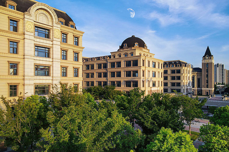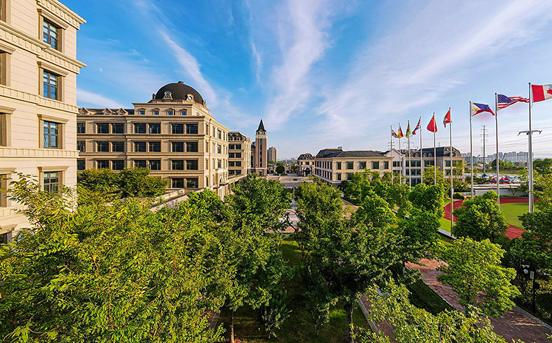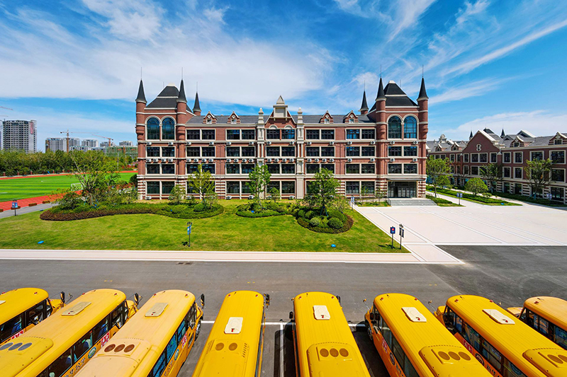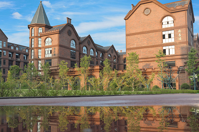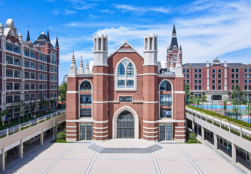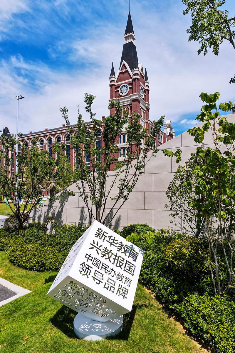 簡約的英式建筑與尖頂?shù)母呗栫姌?,錯(cuò)落有致地散落在校園里,構(gòu)成新華藝術(shù)高級(jí)中學(xué)的獨(dú)特風(fēng)景線。