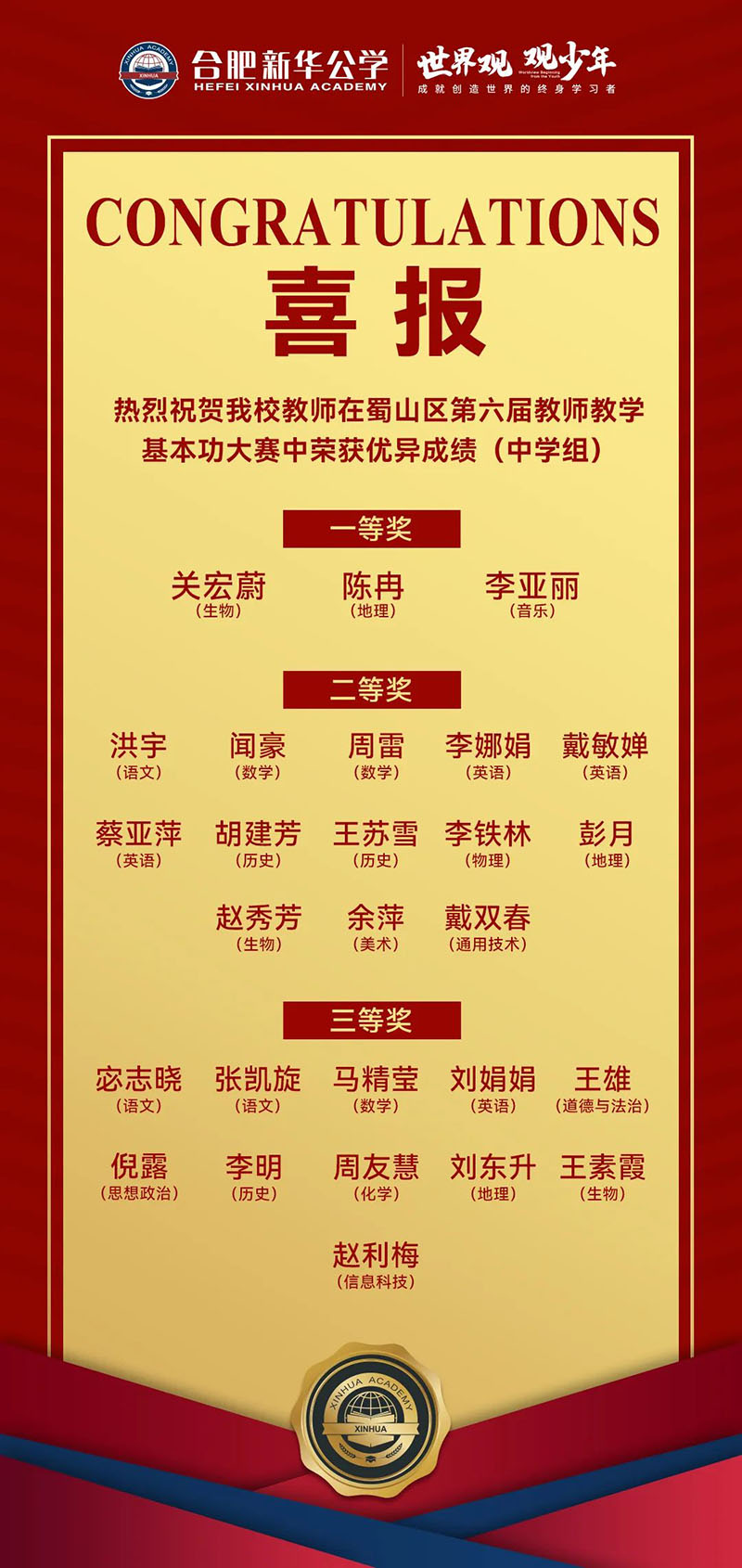 歲陰窮暮紀,獻禮啟新芳。冬盡今宵促,年開明日長。在2024年的開年之際,蜀山區(qū)第六屆教師教學(xué)基本功大賽獲獎名單正式公示。