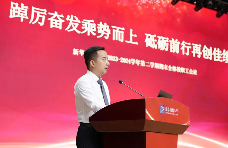 為全面總結本學期教育教學工作,明確發(fā)展方向,確保假期安全有序,凝聚全體教職工共識,促進學校高質量發(fā)展。7月12日,新華高級中學在文體中心報告廳隆重召開2023-2024學年第二學期期末全體教職工會議。新華高級中學校長徐邦民,副校長蔡賢滿、吳東、方明生等領導及全體教職員工共同參加,大會由方明生校長主持。