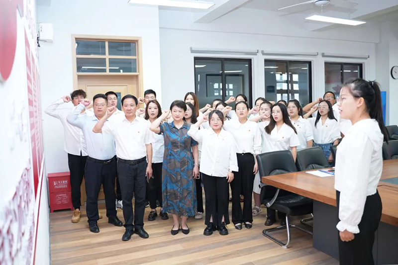 大會(huì)最后,黨員教師黃皖琪帶領(lǐng)全體黨員集體重溫入黨誓詞。面對(duì)鮮紅的黨旗,大家嚴(yán)肅認(rèn)真,響亮的誓言再次讓大家感受到黨員的使命與擔(dān)當(dāng)。