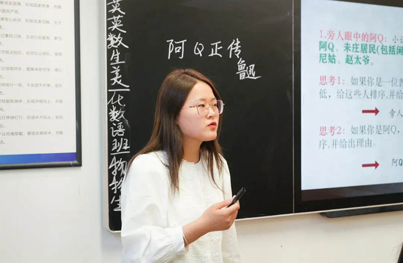 陳燕老師:利用“情境教學(xué)”,為學(xué)生創(chuàng)設(shè)具體生動的課堂場景,激起學(xué)生們對阿Q人物形象分析的學(xué)習(xí)興趣,從而引導(dǎo)他們從整體上理解文本,構(gòu)筑課堂框架。