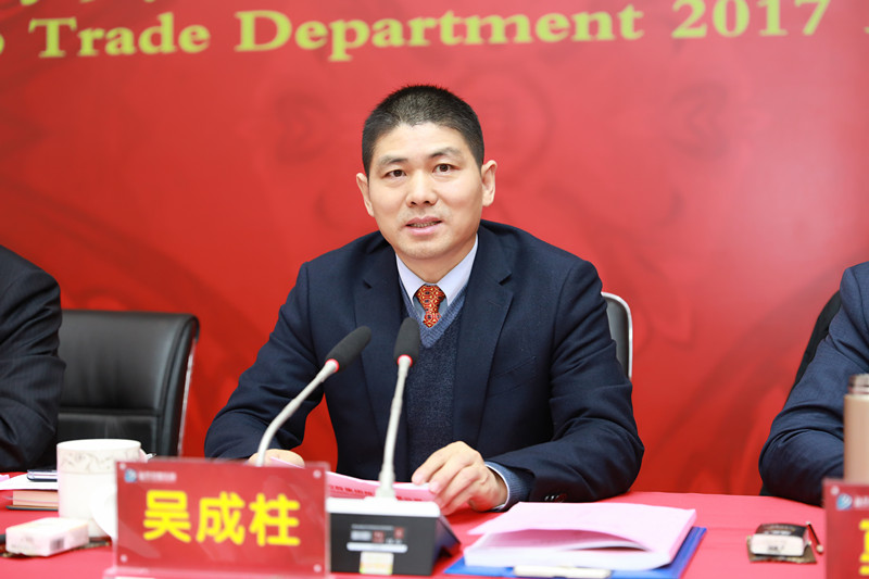 會議最后,新華控股集團吳成柱董事長發(fā)表重要工作講話,對全體員工在2017年奮力發(fā)揚艱苦奮斗、攻堅克難、敢打硬戰(zhàn)、能打勝戰(zhàn)、勇創(chuàng)佳績的精神給予了充分的肯定。在綜合分析了國家經(jīng)濟形勢和行業(yè)態(tài)勢后,董事長要求商貿(mào)事業(yè)部在新的一年,要認清形勢、順應(yīng)大勢、把握機遇、借力發(fā)展,要進一步加強人才隊伍建設(shè),培養(yǎng)造就更多敢擔當?shù)膴^斗者、干成事的同路人;要進一步增強發(fā)展愿力,創(chuàng)新商業(yè)模式,鑄造優(yōu)秀品牌;要進一步完善激勵機制,推進同心共享,打造事業(yè)平臺;要進一步優(yōu)化運營管理,提高管控水平,健全標準規(guī)范;要進一步弘揚企業(yè)文化,根植新華傳統(tǒng),傳承優(yōu)良作風(fēng),為實現(xiàn)商貿(mào)事業(yè)更加平穩(wěn)健康發(fā)展而不懈奮斗!