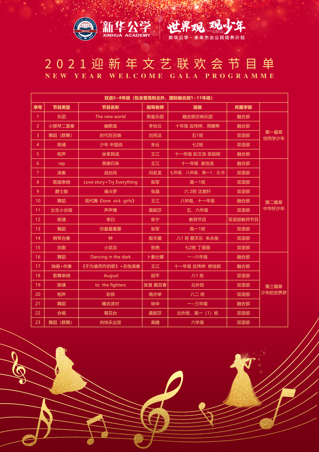 回首過去我們熱情洋溢,展望未來我們斗志昂揚(yáng),讓我們?cè)谛碌囊荒昀飶堥_騰飛的翅膀,向著更高的目標(biāo)飛翔。看了我們低年級(jí)小朋友的精彩表演,是否感覺到意猶未盡呢~~明天將會(huì)推出高年級(jí)專場匯演,敬請(qǐng)期待吧~~
