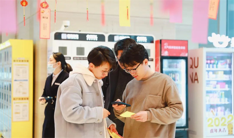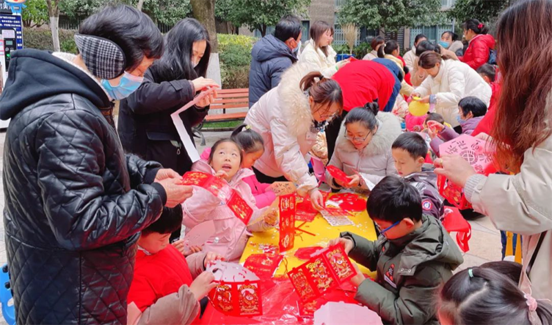 在徽商城市庭院,物業(yè)服務(wù)人員沿著園區(qū)主干道進行元宵燈謎的設(shè)計,來往的業(yè)主紛紛參與其中,沉浸在節(jié)日喜慶的氛圍里。