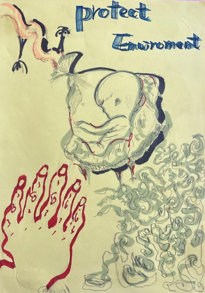 同學(xué)們從“防疫、和平、環(huán)境、保護(hù)動(dòng)物...等等人文角度,開展了一系列藝術(shù)創(chuàng)作。
