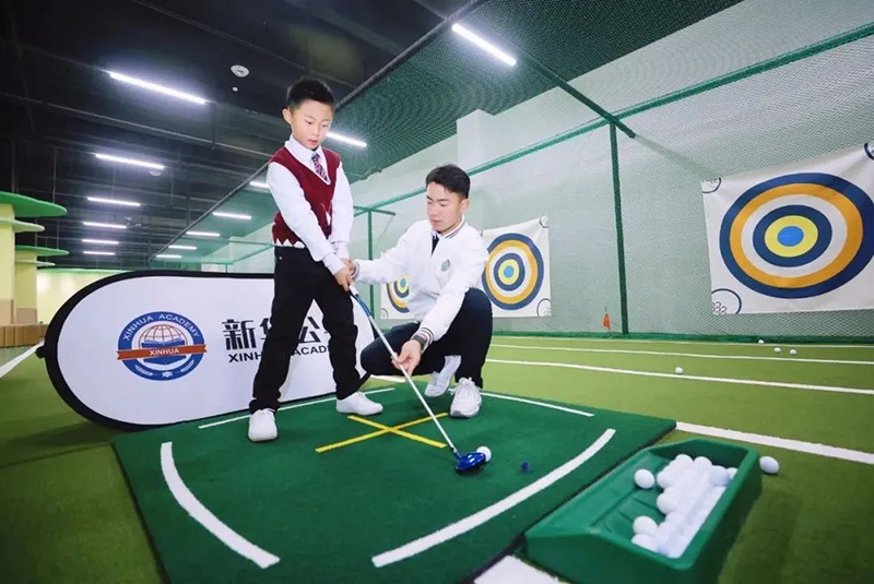 2021年,新華公學新建國際高爾夫訓練中心,為目前安徽最大的青少年高爾夫室內(nèi)運動場館。館內(nèi)擁有工智能模擬區(qū)、揮桿訓練區(qū)、體能綜合訓練區(qū)、高爾夫歷史文化展覽區(qū),供學生們學習和訓練。