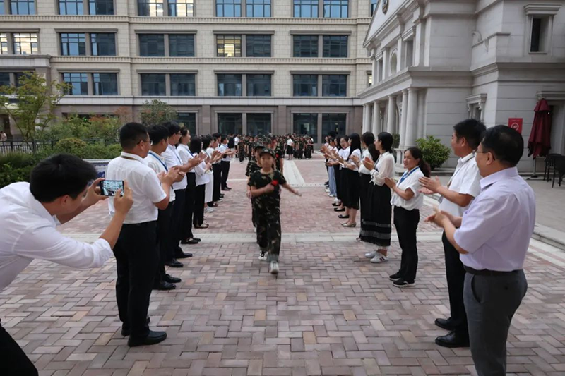 隨后新華公學(xué)總校長(zhǎng)秦新春給同學(xué)們帶來(lái)了殷切的期望和囑托。他表示,軍訓(xùn)是邁入人生新階段的第一課。因此,通過(guò)軍訓(xùn)的磨練后,他希望同學(xué)們能夠在生活上自立、學(xué)習(xí)上自主、健身上自覺(jué)、行為上自律、精神上自強(qiáng),樹(shù)立良好的學(xué)習(xí)和生活觀。