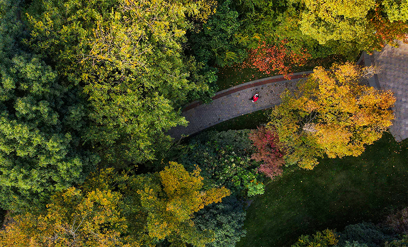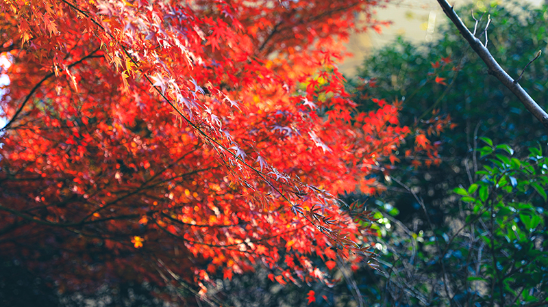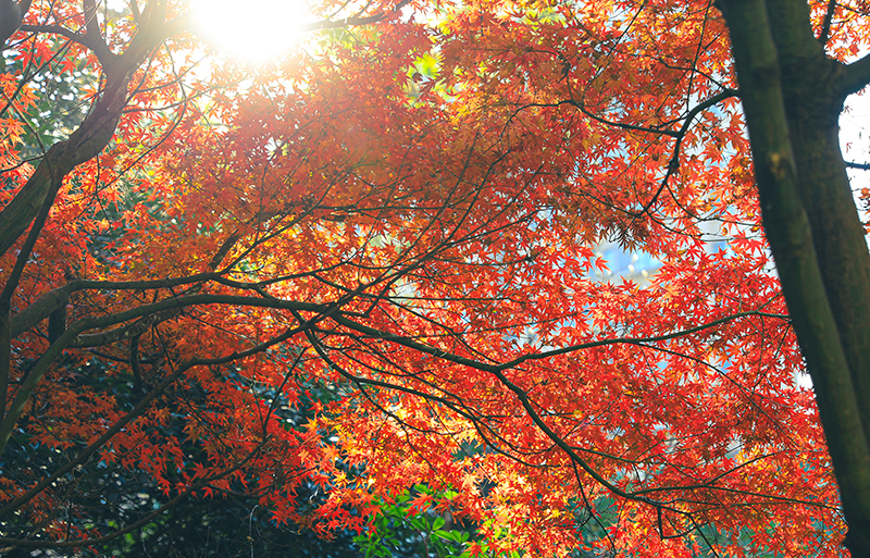 “霜染鴉楓迎日醉”,和煦陽(yáng)光灑滿(mǎn)楓葉,如生命之火輕盈躍動(dòng),以經(jīng)霜不改蓬勃的風(fēng)姿溫暖過(guò)路歸人。