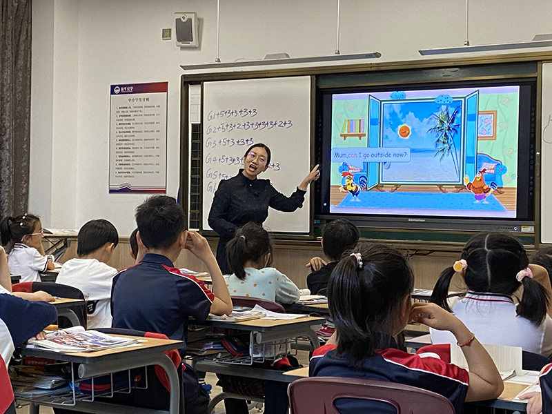 喬斌老師評課:在學習復習了所有天氣單詞后,戴老師呈現PEP課本中的句型Can I go outside?并增加了PU中的人物,進行了有趣的融合,孩子們興致高昂,引導學生模仿人物的語氣來進行配音對話,并在完成后及時進行加分和獎勵,激發(fā)了學生的興致,發(fā)展學生的思維能力,也讓孩子們能夠在情境中學習單詞,加強語言的運用。最后,戴老師對本節(jié)課的內容進行了鞏固和升華,拓展了一些活動的短語,鼓勵學生們進行不同天氣的活動匹配,孩子們動手動腦,拓展了知識的廣度,也給學生們了進行了當堂檢測,有效檢測鞏固了本節(jié)課的知識。