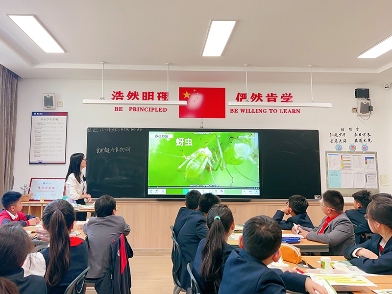 武思佳老師帶來《食物鏈與食物網》。武老師以學生最喜歡的柯南導入課程,激勵學生一起來探案。引導學生觀察現場圖片,發(fā)現豆苗葉的不同。