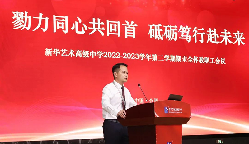 盛情夏季,桃李芬芳;潛心育人,賡續(xù)前行。為發(fā)揮黨建的引領作用,推動學校工作高質(zhì)量發(fā)展,凝聚新征程再出發(fā)的奮進力量,7月11日下午,新華藝術高級中學全體教職員工歡聚一堂,隆重召開以“勠力同心共回首,砥礪篤行赴未來”為主題的2022-2023學年第二學期期末全體教職工會議。新華藝術高級中學校長邵忠德,副校長蔡賢滿、李愛國、吳東、方明生等領導及全體教職員工參加,大會由黨政辦公室主任夏娟娟主持。