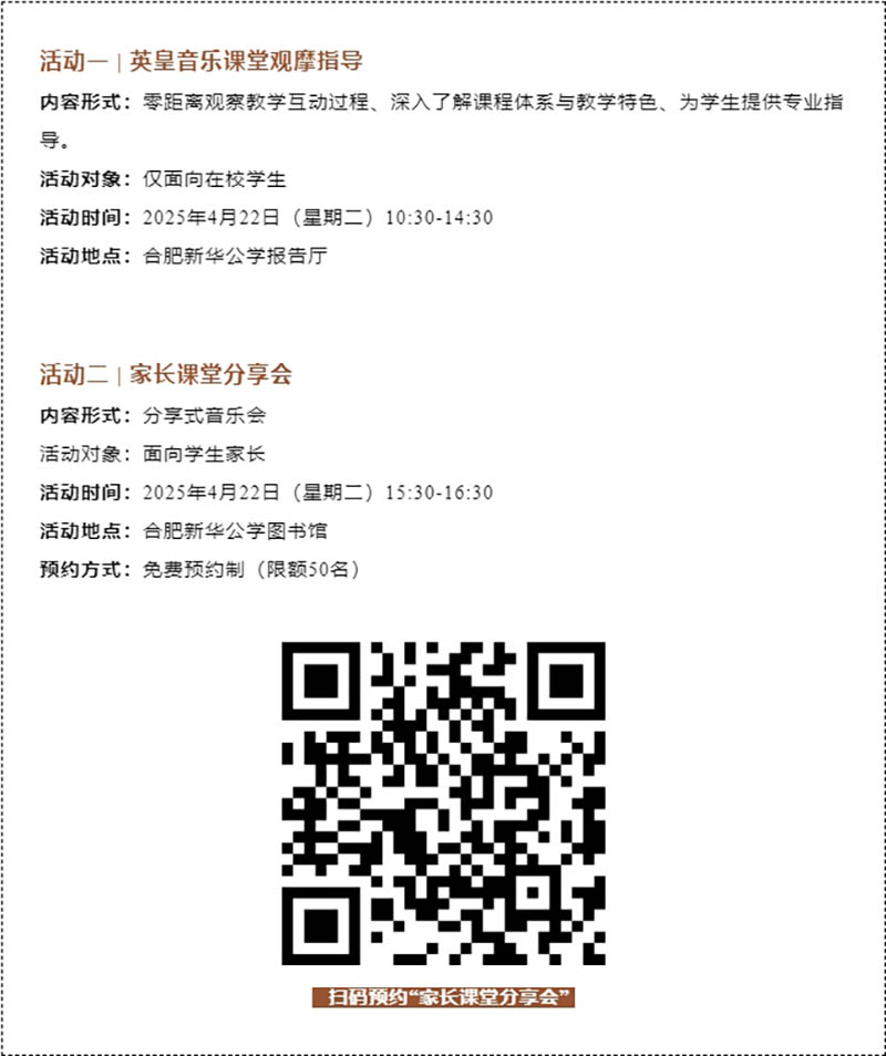 4月22日大師們將參訪開展英皇音樂課程教學的合肥新華公學,為師生提供更加專業(yè)的藝術點撥。此次音樂大師的傾情指導,必將對我校音樂教育水平的提升產(chǎn)生深遠影響,為師生帶來彌足珍貴的藝術啟迪